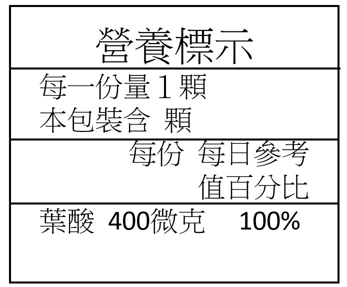 一般來說,檢視標籤上的營養標示,即可獲取葉酸含量的信息。台灣的包裝範例如下: